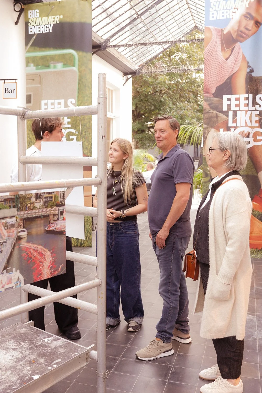 Large printed banners showcasing UGG’s seasonal campaign imagery framed the space, creating a visual link between the brand’s global identity and the local creative expressions on display. Students’ works became part of a fluid installation that blurred the lines between gallery and gathering. The atmosphere was bright, confident, and full of movement — just like summer itself.