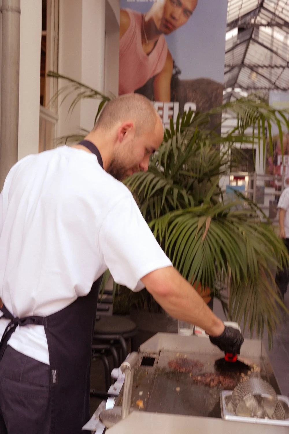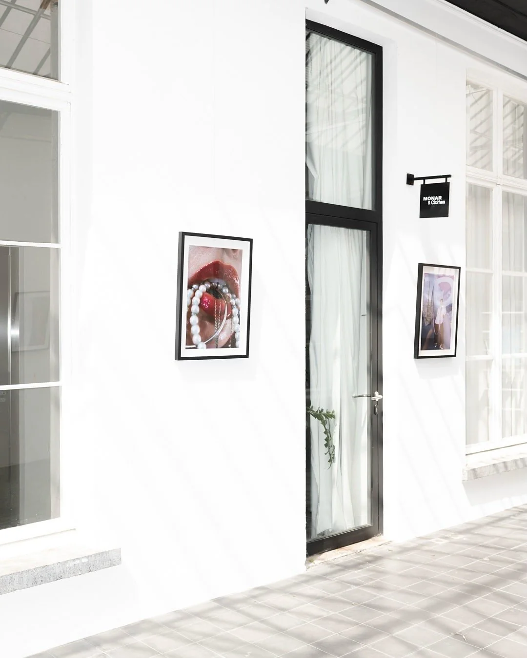 The set design embodied the concept — an open, magnetic space that invited expression and interaction. Monar & Clothes is fortunate to have a unique location: a bright, fully covered hallway leading to a courtyard with its own bar. We took full advantage of this setup, transforming it into an immersive exhibition space that naturally drew people in from the street.